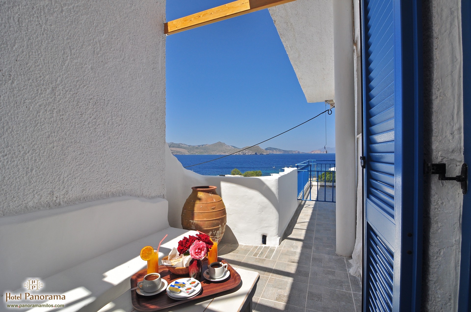 Panorama Hotel, Klima, Milos - A family hotel with elevated sea views in the fishing village of Klima, island of Milos.