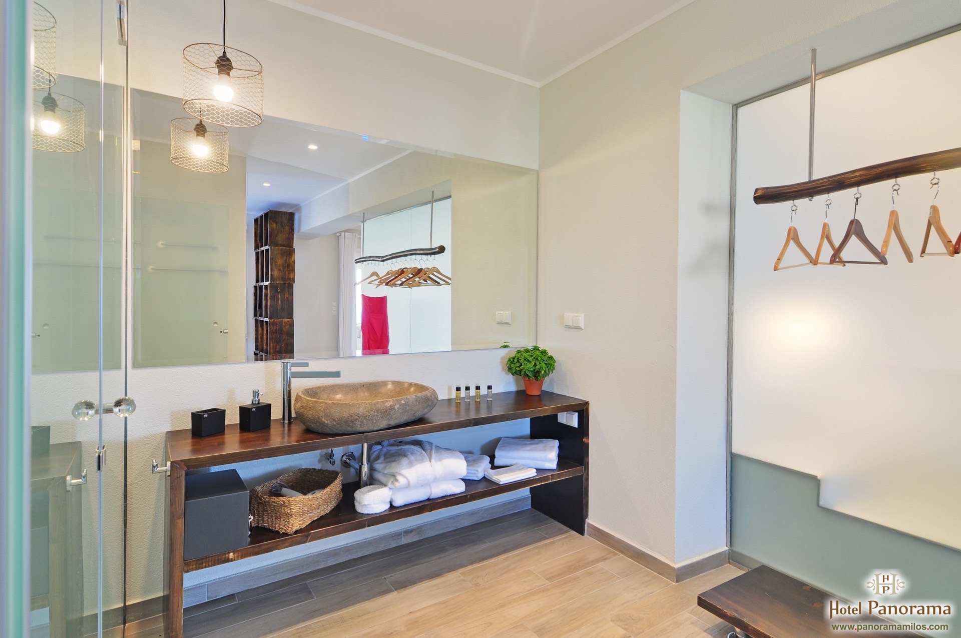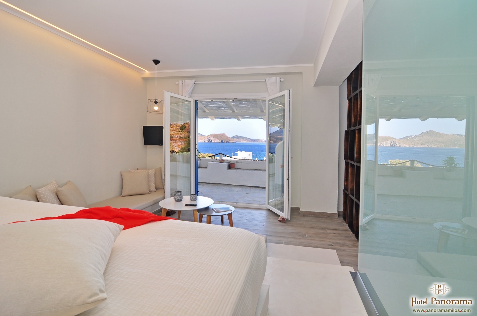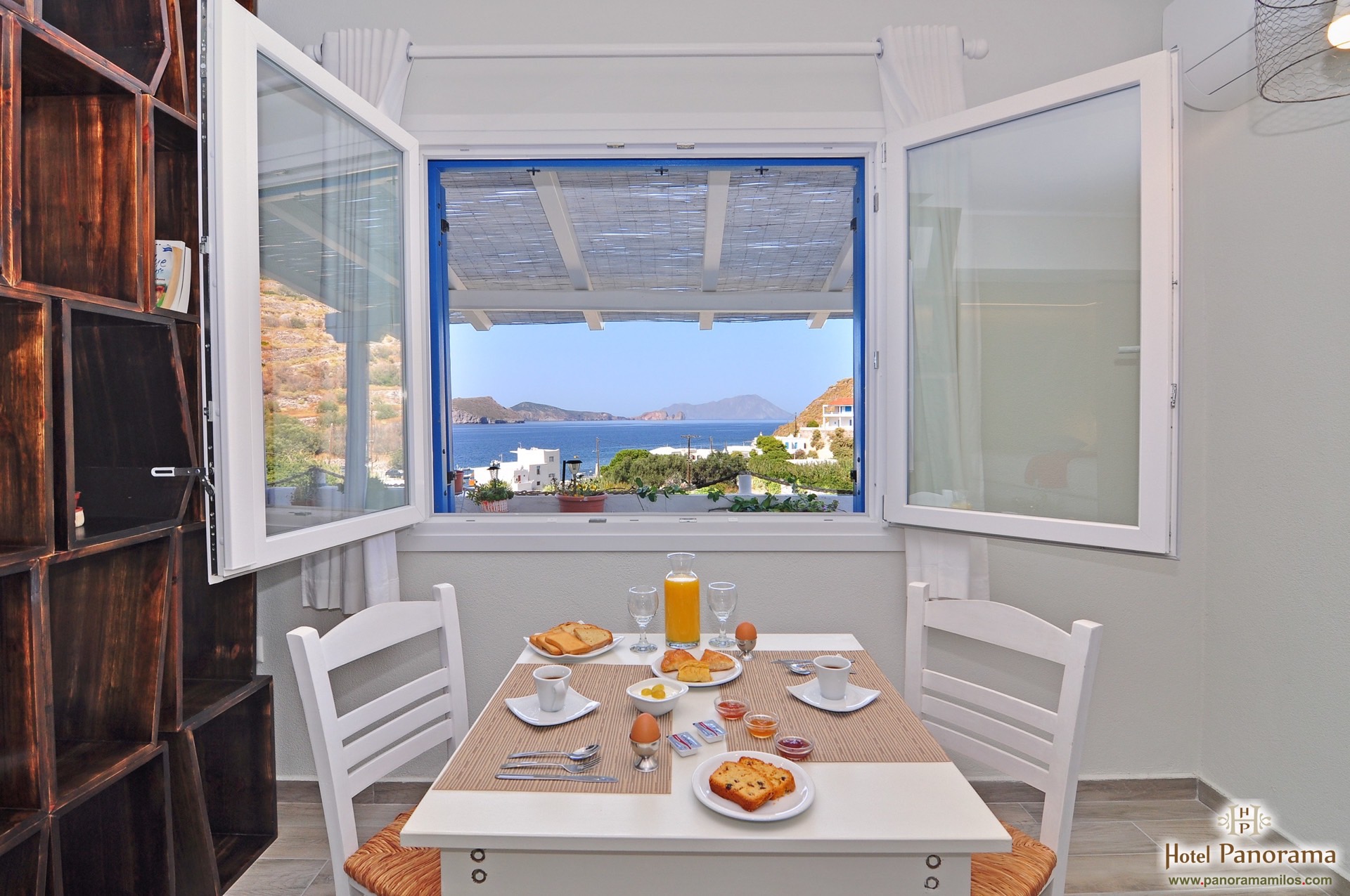Panorama Hotel, Klima, Milos - A family hotel with elevated sea views in the fishing village of Klima, island of Milos.